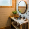 Soft lighting from antique-inspired fixtures adds to the ambiance, casting a gentle glow throughout the space. With touches of nature, such as woven baskets and floral patterns, this room is a peaceful reminder of simpler times, offering a comforting escape from the chaos of everyday life.