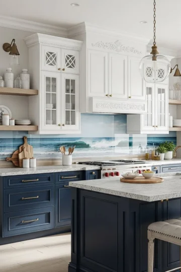 13 Open Concept Kitchens Featuring Blue and White Cabinet Combinations