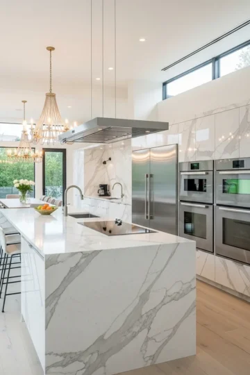 15 Open Kitchen Layouts with Elegant Marble Walls