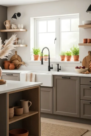 10 Farmhouse Kitchens with Light Taupe Cabinet Vibes